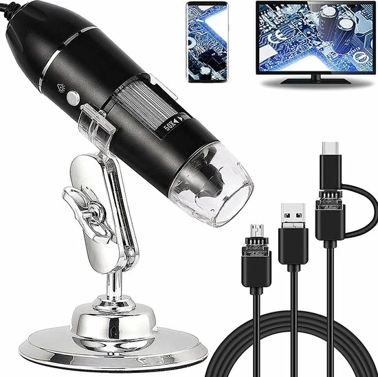 USB digitale microscoop 50X tot 1600X, 8 LED vergroting Endoscoop Camera Mini Camera met OTG-adapter met standaard, compatibel voor Android Windows 7 8 10 Linux Mac