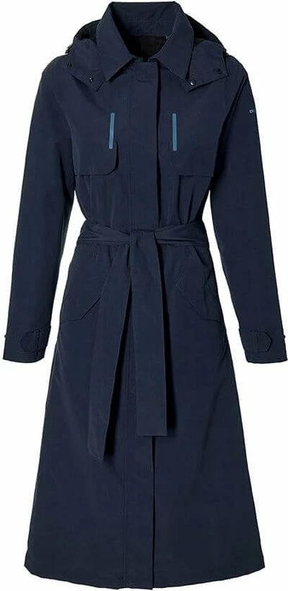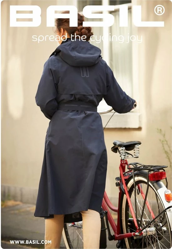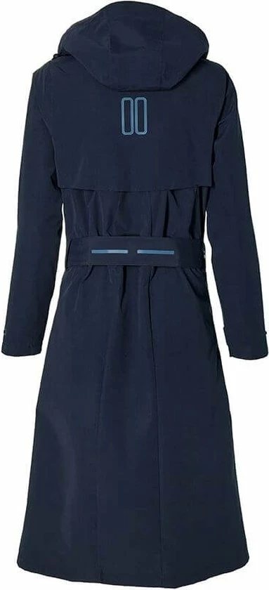 De Basil Mosse is een functionele en zeer stijlvolle fietsregenjas voor vrouwen. De blauwe trenchcoat is waterdicht dankzij 5.000 WP en heeft een ademend vermogen van 5.000 MVP. De PWR-coating laat regenwater weglopen, zodat er geen vocht naar binnen kan dringen. Aan de voorkant van de jas zitten twee ritsen: een bovenste rits met kinbescherming en een onderste rits. Deze ritsen kunnen apart gebruikt worden. Een extra voering achter beide ritsen houdt uw kleding droog. Aan de zijkanten van de jas zitten nog twee ritsen. U kunt deze ritsen gebruiken als u met uw jas aan op de fiets rijdt. Dan voeg je extra stof toe aan de jas, zodat je meer bewegingsvrijheid hebt. De trenchcoat heeft ook een mesh en taffeta voering, heeft praktische zijzakken en is zowel aan de achter- als aan de voorkant geventileerd. De bovenkanten van de mouwen zijn verlengd en kunnen worden aangepast om het comfort te optimaliseren. Aan de binnenzijde van de jas zit een extra elastiek voor de taille, wat bijdraagt aan de perfecte pasvorm.
