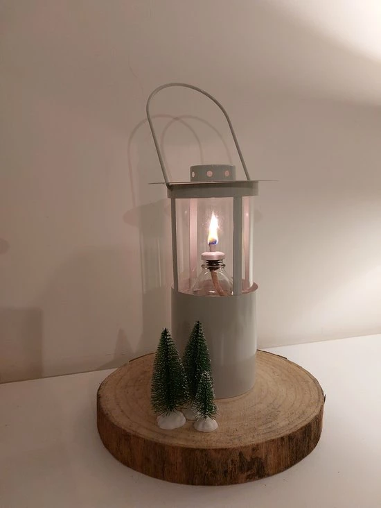 Deze mooie witte olielamp zorgt voor een mooie, warme sfeer.