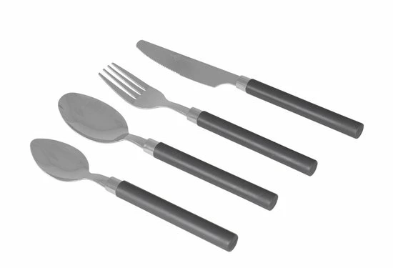 Een stevige 24-delige bestekset. Deze praktische set is geschikt voor 6 personen en bestaat uit 6 messen, 6 vorken, 6 lepels en 6 kleine (thee) lepeltjes. Gemaakt van roestvrij staal met een kunststof heft en de set heeft hierdoor een lange levensduur. Verpakt in een stevige blister.