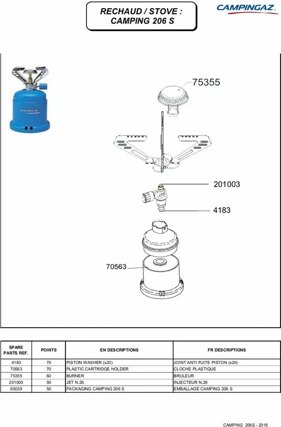 De belangrijkste kenmerken van de Campingaz 206 op een rij: