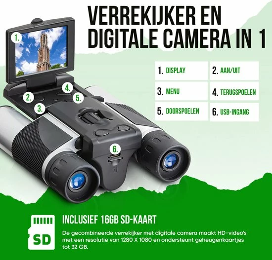 Mis nooit meer een prachtig moment tijdens het spotten dankzij deze Cofornye Verrekijker met Camera. De verrekijker met digitale camera legt HD-beelden vast met een resolutie van 1280×1080, middels de 5MP ingebouwde camera.