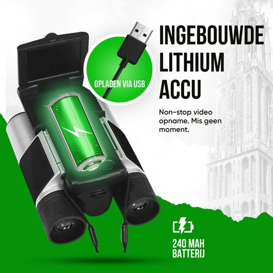 De volledig gecoate 25mm objectieflenzen van de Verrekijker met Camera bekijkt de dingen van dichterbij met een verrekijkersysteem die tot wel 8 keer vergroot. De ingebouwde camera legt de mooiste momenten vast, waarnaar ze te bewonderen zijn op het 2,0” scherm, of via de PC.
