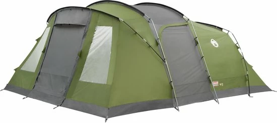 Dankzij een 3000 mm waterkolom, een geïntegreerd grondzeil en een volledig getapete buitentent is deze familietent prima bestand tegen regenbuien. De stokken in deze tent zijn van staal en glasvezel wat hem extra verstevigd tegen windstoten. Is het erg zonnig? Dankzij de Coleman’s UVGuard™ biedt de tent SPF 50 bescherming tegen zonnestralen.