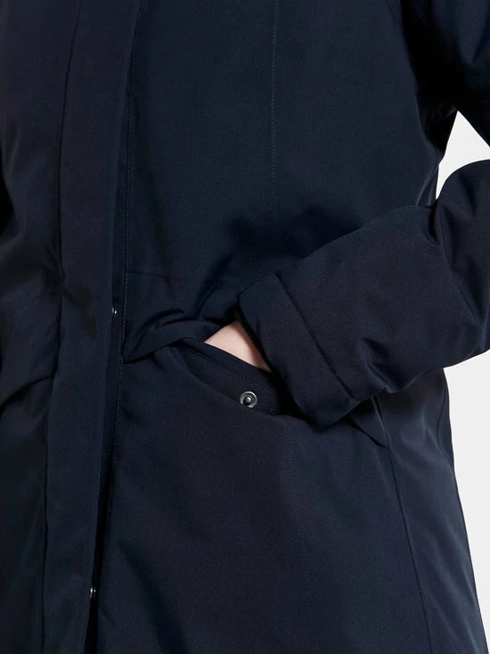 Parka in strak design met knusse capuchon die een mooie kraag vormt wanneer hij wordt neergeklapt. Ontworpen voor de persoon die op zoek is naar een parka met een strak design. Zachte polyester geweven stof met dof oppervlak (Nieuwe stof voor AW22 = hetzelfde als Ilma), Regular fit / figuurvormig met lichte achterkant. Verborgen reflecterende binnenkant mouwuiteinde uitklappen wanneer nodig.