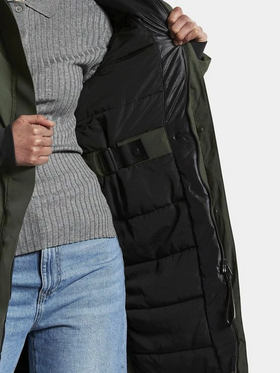 Leya is een gewatteerde, sportieve parka met veel functionele details voor dagelijks gebruik. De parka is volledig wind- en waterdicht met getapete naden en heeft een relaxte pasvorm met een recht silhouet. De taille is verstelbaar en er zijn splitjes aan de zijkanten voor meer bewegingsvrijheid. Leya heeft een vaste, verstelbare capuchon en een doorlopende tweewegritssluiting aan de voorkant met een bescherHerende stormflap. De mouw is eenvoudig op te vouwen voor een kortere mouwlengte. Aan de binnenkant, aan de achterkant, is een verwarHerend fleece-mesh toegevoegd. De parka heeft twee voorzakken met knoop en zijopeningen en een borstzak met rits. In het rechter voorvak zit een reflecterende riem om uit te vouwen als dat nodig is. De vulling is gemaakt van gerecyclede vezels en de voering is geverfd met een oplossingsverftechniek. Deze techniek vermindert het water-, energie- en chemicaliënverbruik tijdens de productie. PFC-vrije waterafstotende afwerking.