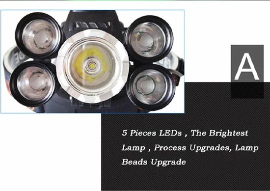Produceren een ultra heldere lichtstraal door 5 LEDMeerdere gebruik voor koplamp hoofd lamp of zaklamp als dit itemInterne bedrading past de hoog efficiënte booster circuit, werkspanning is breed en kan de batterijen in de grootste mate.Verstelbaar is voor elke koplamp, met heen en weer neiging.Uitgebreide Levensduur van LED (100,000 uur)Oplaadbare batterijen en universele lader voorzienVerstelbare hoofdband, Het is comfortabel om te dragen.Gebruik: Vissen. Hunt. Outdoor verlichting. Verkennen. Rock Klimmen. Nacht home verlichting. Night walk. Rijden. EEN verscheidenheid van toepassingen.
