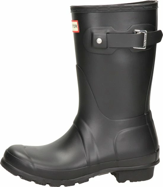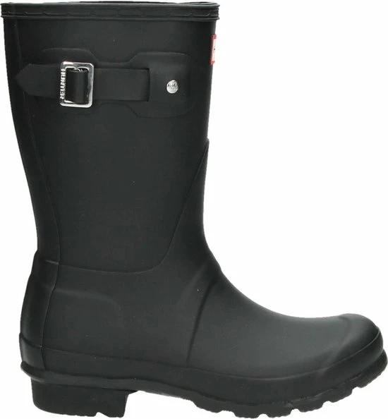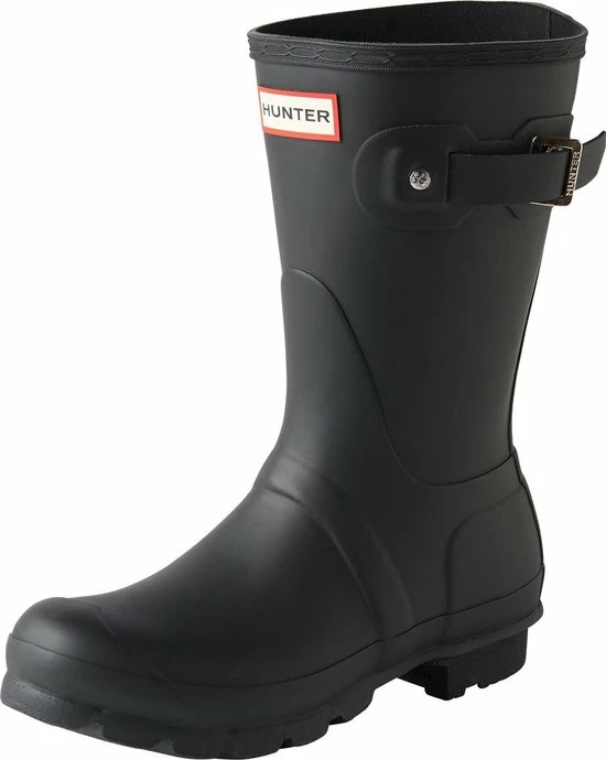 Van het Britse merk Hunter is deze Womens Original Short regenlaars. Een perfecte laars met een hoog comfort en een toffe look. Dit zwarte model is handgemaakt van natuurlijk gevulcaniseerd rubber en heeft een matte finish. Op de voorkant bevindt zich een merkopdruk en de schacht heeft een siergesp op de zijkant. De rubberen buitenzool heeft een gripvast profiel en de laars heeft een textiel binnenvoering met vast voetbed. Met dit exemplaar ben jij klaar voor alle weersinvloeden dit jaar!