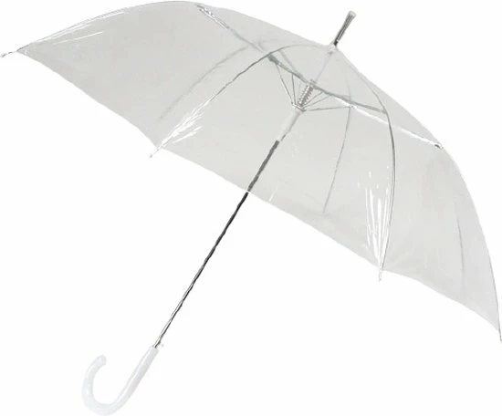 Falconetti® paraplu, metalen stok, wit transparant POE, bijpassend gekleurde haak.