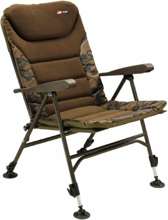 De JRC Rova Relaxa Armchair is weer zo’n parel uit de nieuwe camouflage print serie van JRC. Deze lichte karperstoel met armleuningen is uitgerust met een heerlijk zachte rugleuning en zitting voor een langdurige comfortabele zit aan de waterkant. De JRC Rova Relaxa Armchair is uiteraard uitgerust met verstelbare modderpoten.