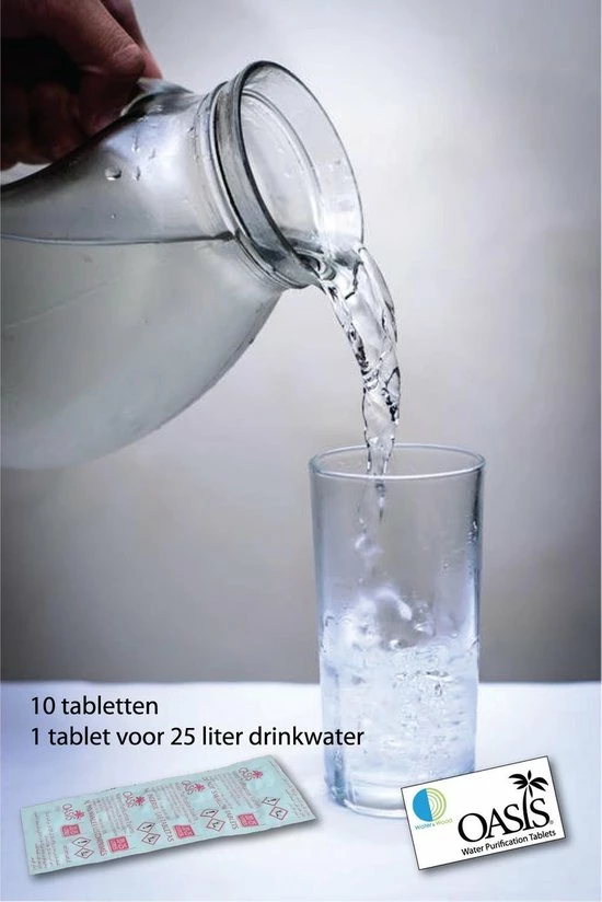 Oasis Water Purification Tablets set van 10 tabletten- reinigt en desinfecteert water, maakt het water veilig om te drinken en beschermt tegen ziektekiemen (bacterien en virussen).