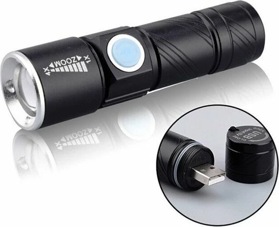De zaklamp is door middel van de USB stekker op te laden, thuis, in de auto of onderweg.