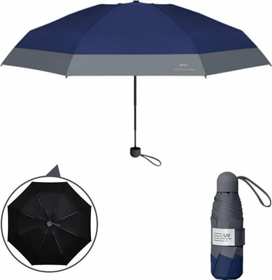 Merkloos TDR -Opvouwbare Paraplu -Windproof- Zonnescherm UV-SPF 50+compact En Draagbaar- Extra Sterk – Marineblauw