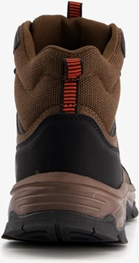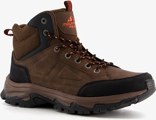 Hoge, bruine wandelschoenen van Mountain Peak uit categorie A/B. Gemaakt van imitatieleer, een binnenwerk van textiel en een stevige profielzool. De wandelschoenen hebben een vetersluiting en aantreklusjes op de hiel en tong voor een makkelijke instap. Het comfortabele voetbed is gemaakt van textiel. Deze is niet uitneembaar zodat je je eigen zooltjes in de schoenen kunt dragen. Categorie A/B wandelschoenen zijn middelhoog en bieden voldoende steun en stabiliteit voor onverharde of ongelijke ondergronden. Ze zijn geschikt als allround wandel- en bergschoenen. De zolen van categorie A/B wandelschoenen zijn nog voldoende soepel.