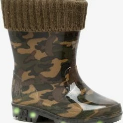 Stijlvol in de plassen stampen met deze regenlaarsjes met camouflage print uit de Mountain Peak collectie. Gemaakt van synthetisch PVC, wat de laarzen flexibel maakt. De regenlaarzen hebben een zachte voering en omslag van gebreide stof. Het comfortabele voetbed is gemaakt van textiel en is niet uitneembaar. Voorzien van een stevige, schokdempende profielzool van rubber die grip en optimaal comfort biedt. De laarsjes hebben trendy camouflage print op het bovenwerk en lichtjes in de zool. Ontworpen voor een all-round bescherming in verschillende (weers)omstandigheden en condities, van wandelen in het bos tot stampen in de plassen of door het zand. Verkrijgbaar in de maten 23 t/m 33.