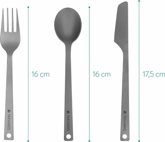 - PRAKTISCHE SET: Met het campingbestek van Navaris ben je goed uitgerust tijdens een wandeling, festival of kampeertrip. De set bestaat uit een vork, mes en lepel.
