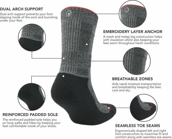 Toegevoegde Prolen®-garentechnologie – fungeert als een droge laag tussen je huid en de sok, waardoor vocht van de huid kan worden afgevoerd en wordt opgevangen door de merinowol om ervoor te zorgen dat je comfortabel blijft. Het is glad en zacht en helpt wrijving tussen je huid en de sok te voorkomen, waardoor wrijving en blaren worden voorkomen.