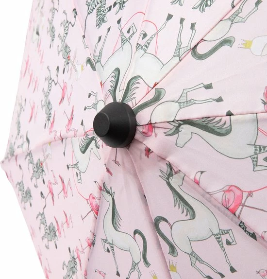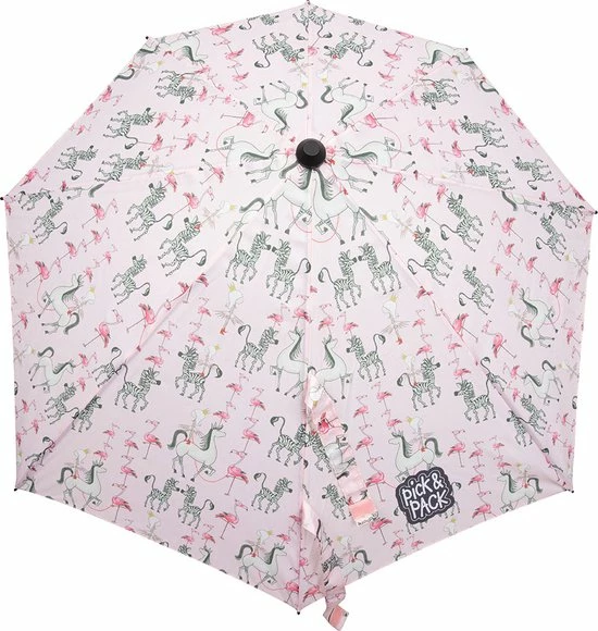 Storm paraplu met een fantastische roze print met prinsessen, zebra’s en flamingo’s voor kinderen van 3 jaar en ouder. Zelfs met regen, sneeuw en zon zijn de kinderen goed beschermd als ze buiten spelen. Pick & Pack is uniek in kinder stormparaplu’s met leuke vrolijke prints. De paraplu heeft een doorsnee van 70cm en een zwart kunststof handvat. Door het sterke frame en de spitse vorm biedt de paraplu weerstand tegen een stevige wind.