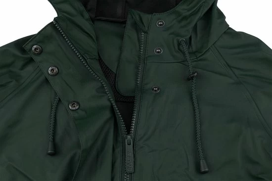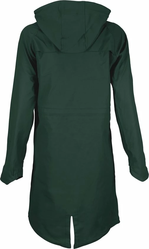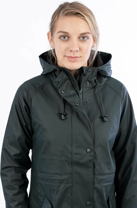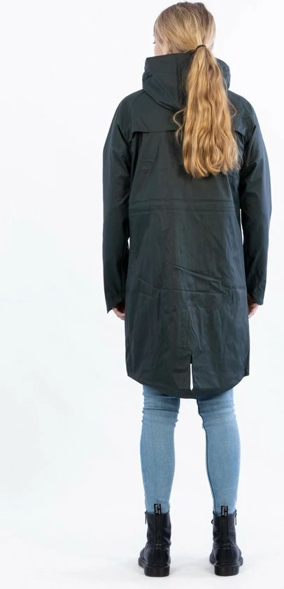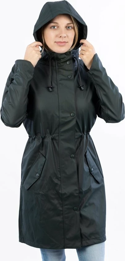 Geen kans om nat te worden met deze functionele en trendy regenjas met capuchon van Ralka. Gemaakt van hoogwaardig materiaal is de jas waterdicht tot minimaal een waterkolom van 3000 mm, ruim voldoende om je tijdens een wandeling of op de fiets met regenachtig weer droog te houden. De regenmantel is voorzien van een 2-way rits en steekzakken met regenoverslagen. De jas is vervaardigd met gelaste naden en een matte PU coating voor extra waterdichtheid. Een opening in de rug van de jas zorgt voor voldoende ventilatie terwijl de jas als geheel winddicht blijft. De getailleerde pasvorm van de Mizzle is naar wens in te stellen en zorgt voor een stijlvolle look. Via een elastisch koord met stopper is de capuchon naar wens verstelbaar. Bij de mouwen is de breedte met drukknopen aan te passen. Kortom, de perfecte jas voor typisch Nederlandse buien.