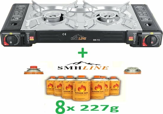Dubbele Campingland -Portable GAS Stove – 2-Pits – RVS – Camping kooktoestel – Kookbrander – -Gasbranders- kookstel- Draagbaar Gasfornuis- INCLUSIEF 8x Gas Flessen