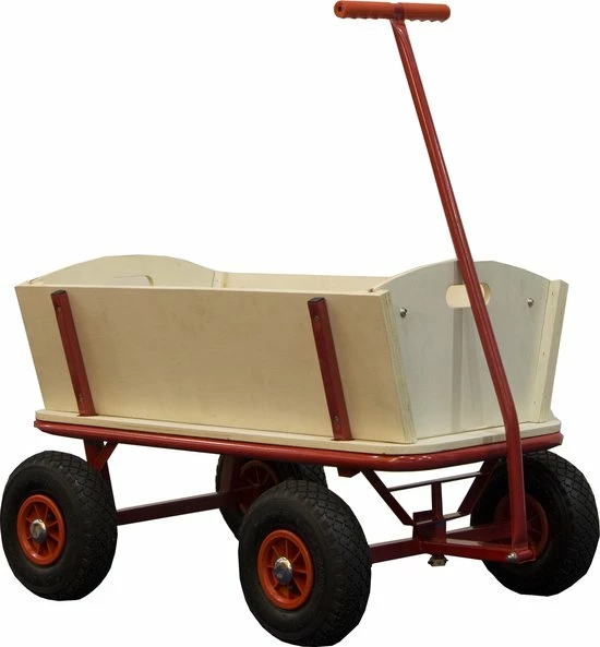 De Billy Beach Wagon van Sunny is een robuuste bolderkar van hout. De stevige luchtbanden van deze bolderwagen maakt het mogelijk om zelfs op ruige terreinen zoals onverharde wegen te rijden. Het maximale gewicht dat deze bolderkar kan trekken is 100 kg. Ruim voldoende om strandspullen voor het hele gezin te vervoeren of om lekkere broodjes, frisdank en speelgoed mee te nemen voor een gezellige picknick. De zijkanten van de kar zijn inklapbaar. Hierdoor neemt Billy weinig plaats in beslag wanneer je hem niet gebruikt of wilt vervoeren in de auto.