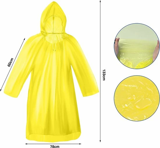 De regenjas is gemaakt van hoogwaardig PE-materiaal en heeft een los ontwerp om te voorkomen dat de regenjas aan u blijft kleven; de verpakkingsbal is gemaakt van ABS-materiaal van hoge kwaliteit, dat duurzaam is.