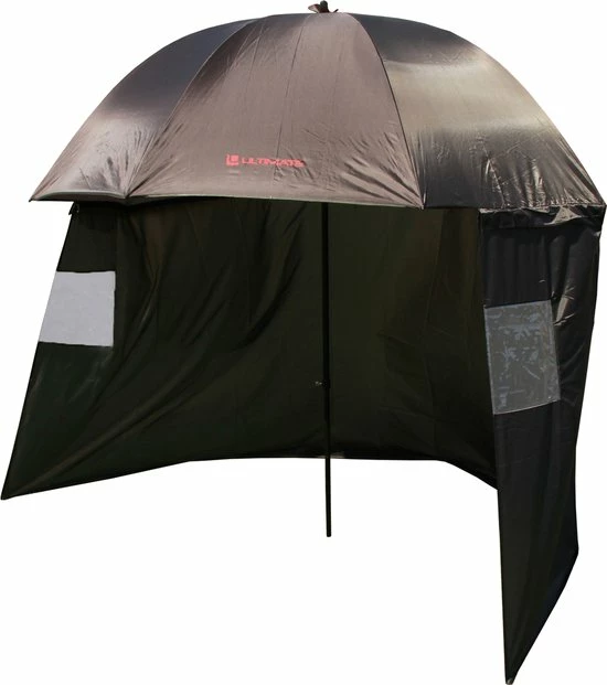 Ultimate 45’’ Umbrella with Side Sheet – Visparaplu – Keuze uit twee varianten – Kleur: groen of camo – Diameter: 180 cm – Uitgerust met side screen met 2 ramen – Zijwand kan met een ritssluiting volledig worden verwijderd – Tweedelige standaard – Traploze instelbaar in hoogte – Materiaal doek: polyester – Voorzien van kantelmechanisme – 100% waterdicht – Perfect af te stellen tegen zon en wind – Met de scherpe punt stevig in de grond te zetten – Gemaakt van stevig materiaal met sterke baleinen – In een handomdraai op te zetten en in te klappen – Inclusief haringen om te side screen te fixeren – Wordt geleverd in handige transportzakDeze Ultimate visparaplu is gemaakt van stevig materiaal met sterke baleinen en een sterk doek en beschermt je tegen regen, zon en wind. De steel is gemakkelijk in hoogte aan te passen en door de knikfunctie kun je de paraplu altijd zo stellen dat je uit de wind of zon kunt vissen. De paraplu is uitgerust met een afritsbare side screen waarin 2 ramen zijn verwerkt. De paraplu is licht van gewicht en dankzij de handige transportzak makkelijk mee te nemen voor een korte of lange sessie. Wordt geleverd inclusief haringen om te side screen te fixeren.