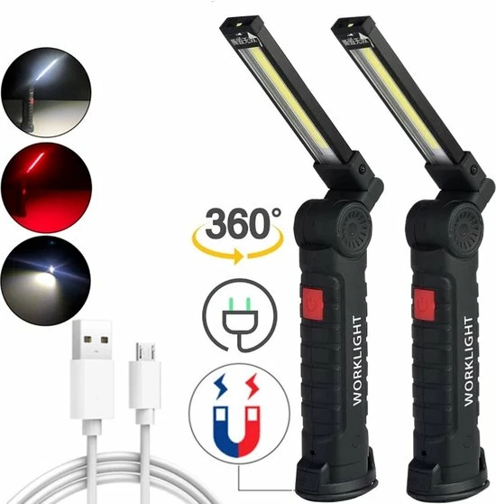 Viatel Led-werklamp, zaklamp, COB LED, werkplaatslamp, inspectielamp, met haak en magneethouder, led-campinglamp voor auto, reparatie, werkplaats, garage, camping, noodverlichting
