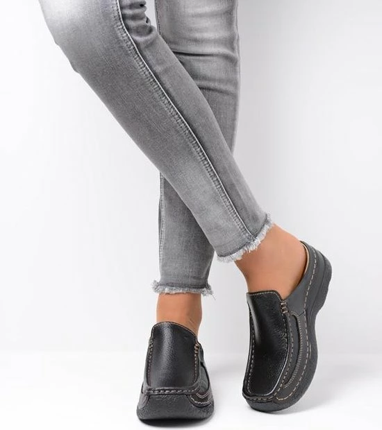 Wolky Comfortschoenen Roll Slide Zwart Leer